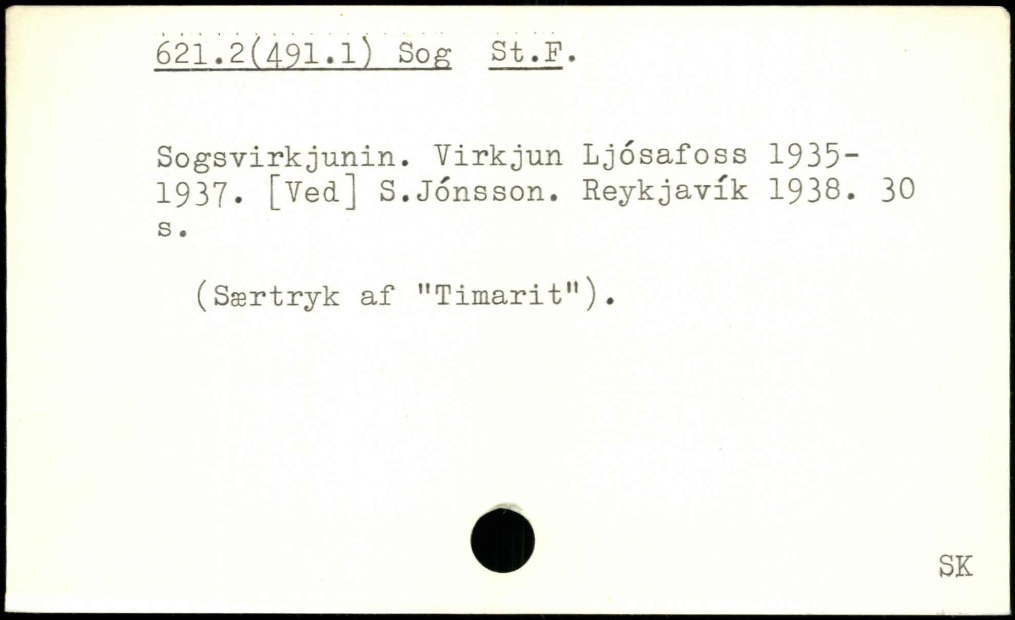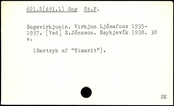 Sogsvirkjunin. Virkjun Ljosafoss 1935-1937. [Ved] S.Jonsson. Reykjavik 1938.