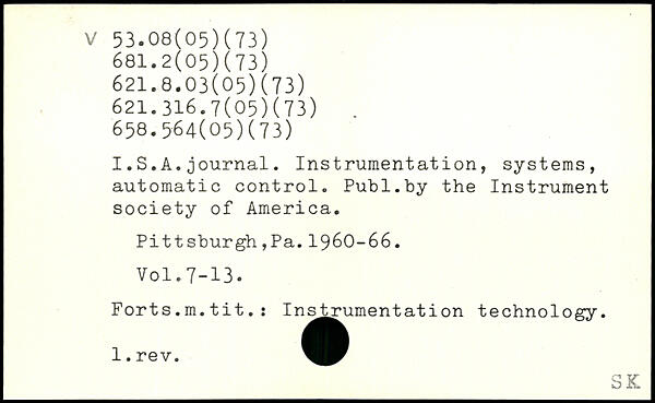 I.S.A.journal. Instrumentation, systems, automatic control.