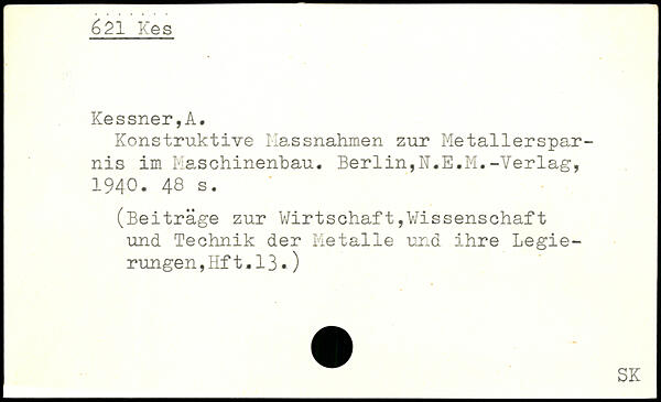 Konstruktive Massnahmen zur Metallersparnis im Maschinenbau. Berlin,N.E.M.-Verlag, (Beiträge zur Wirtschaft,Wissenschaft und Technik der Metalle und ihre Legierungen ,Hf't.13.)