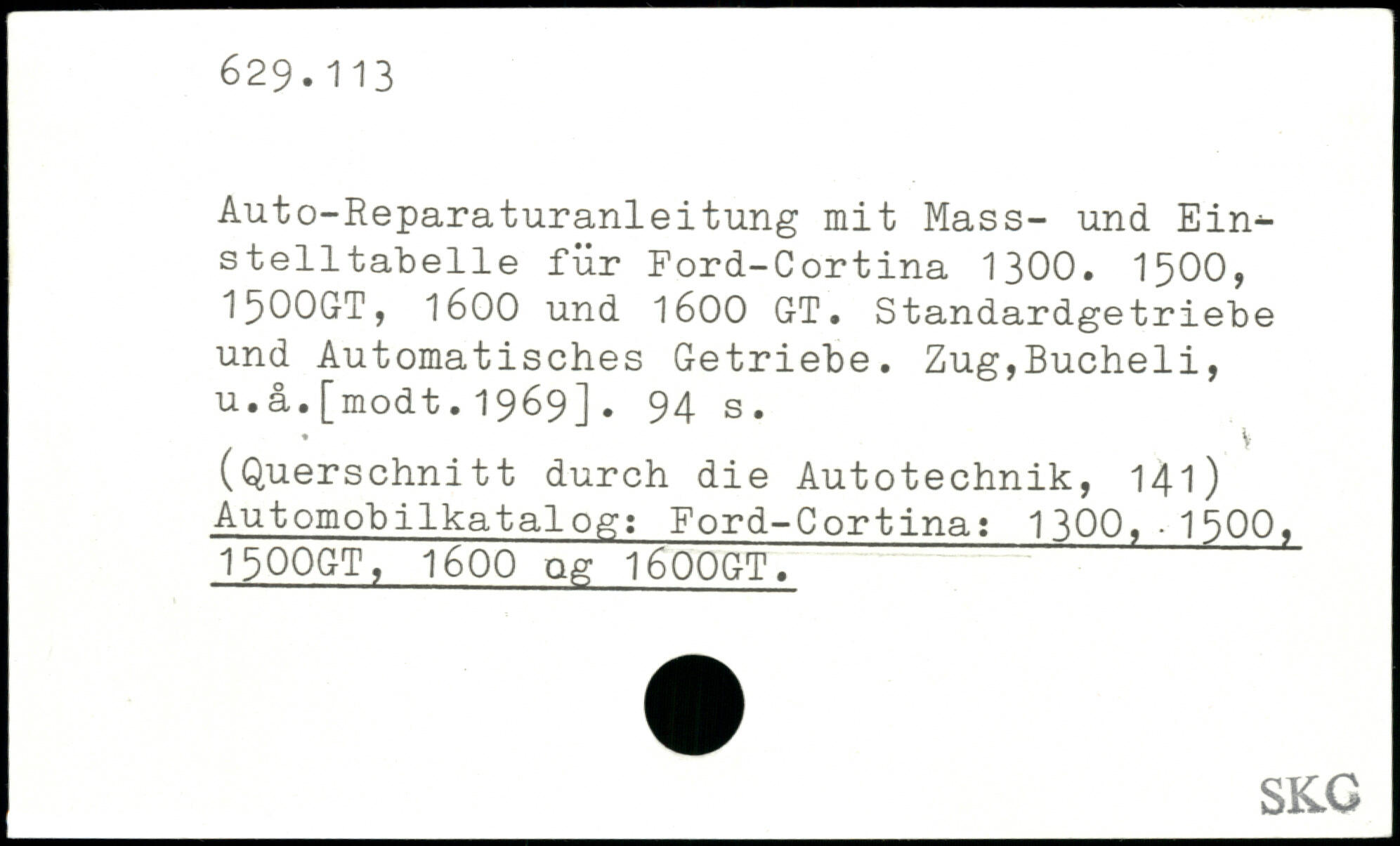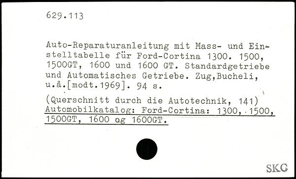 Auto-Reparaturanleitung mit Mass- und Ein-Stelltabelle für Ford-Cortina 1300. 1500, 1500GT, 1600 und 1600 GT. Standardgetriebe und Automatisches Getriebe. Zug,Bucheli, u.a.[modt.1969].