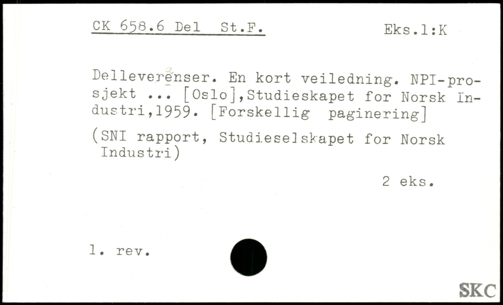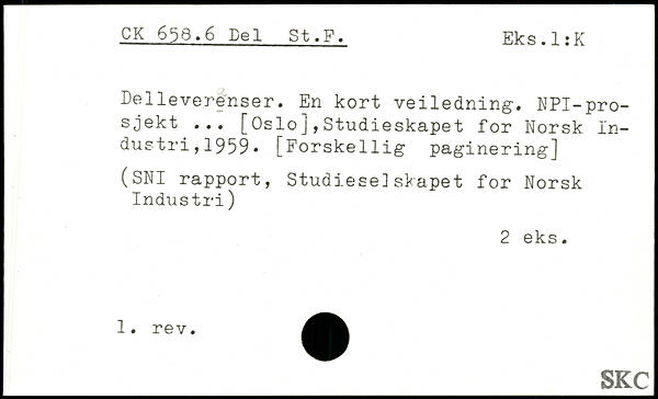 Delleverenser. En kort veiledning. NPI-pro-sjekt ... [Oslo],Studieskapet for Norsk Industri, 1959. [Forskellig paginering]
