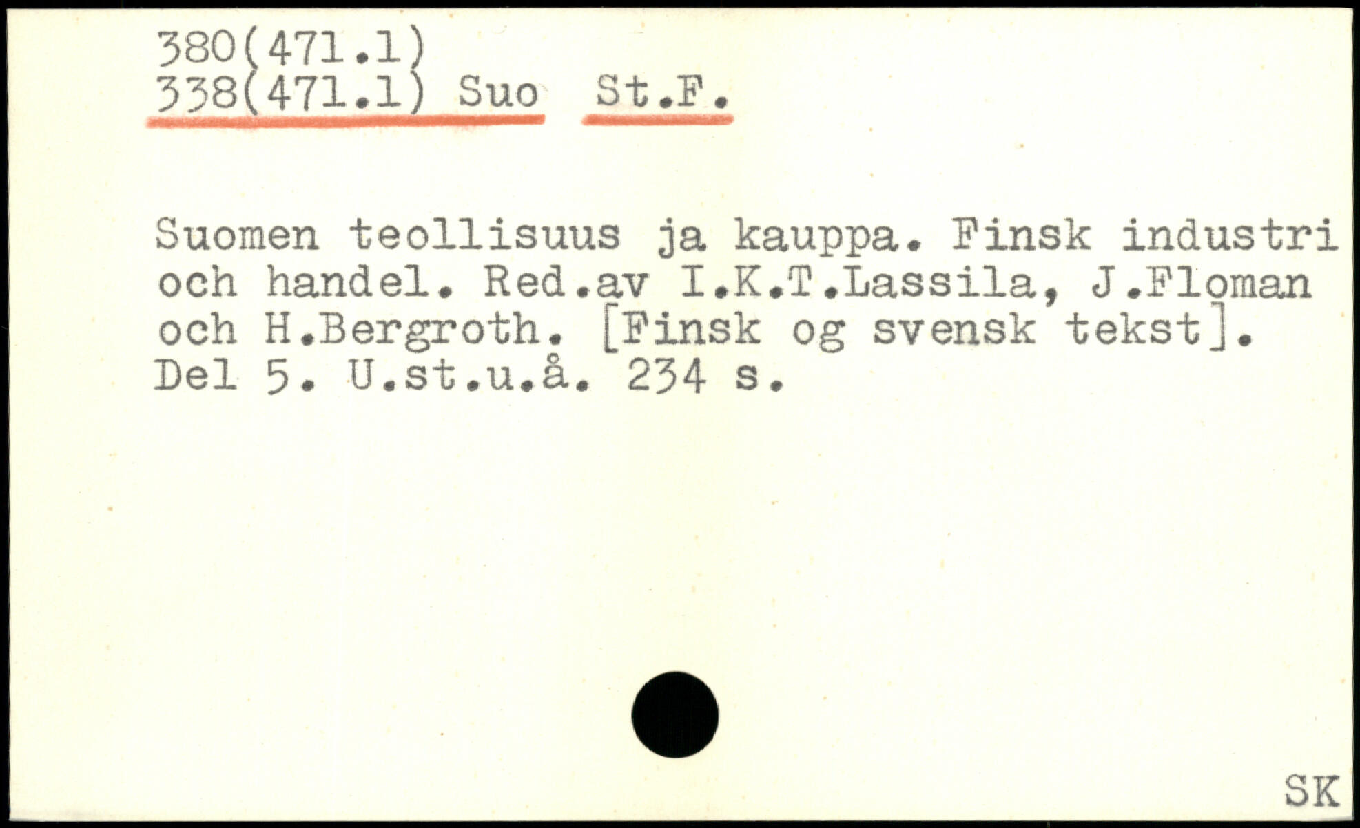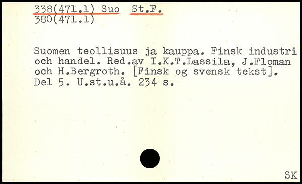 Suomen teollisuus ja kauppa. Finsk industri och handel. Red.av I.K.T.Lassila, J.Floman och H.Bergroth. [Finsk og svensk tekst]. Del 3. U.st.u.å.