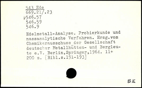 Edelmetall-Analyse. Probierkunde und nassanalytische Verfahren. Hrsg.vom Chemikerausschuss der Gesellschaft ; deutscher Metallhutten- und Bergleute e.V