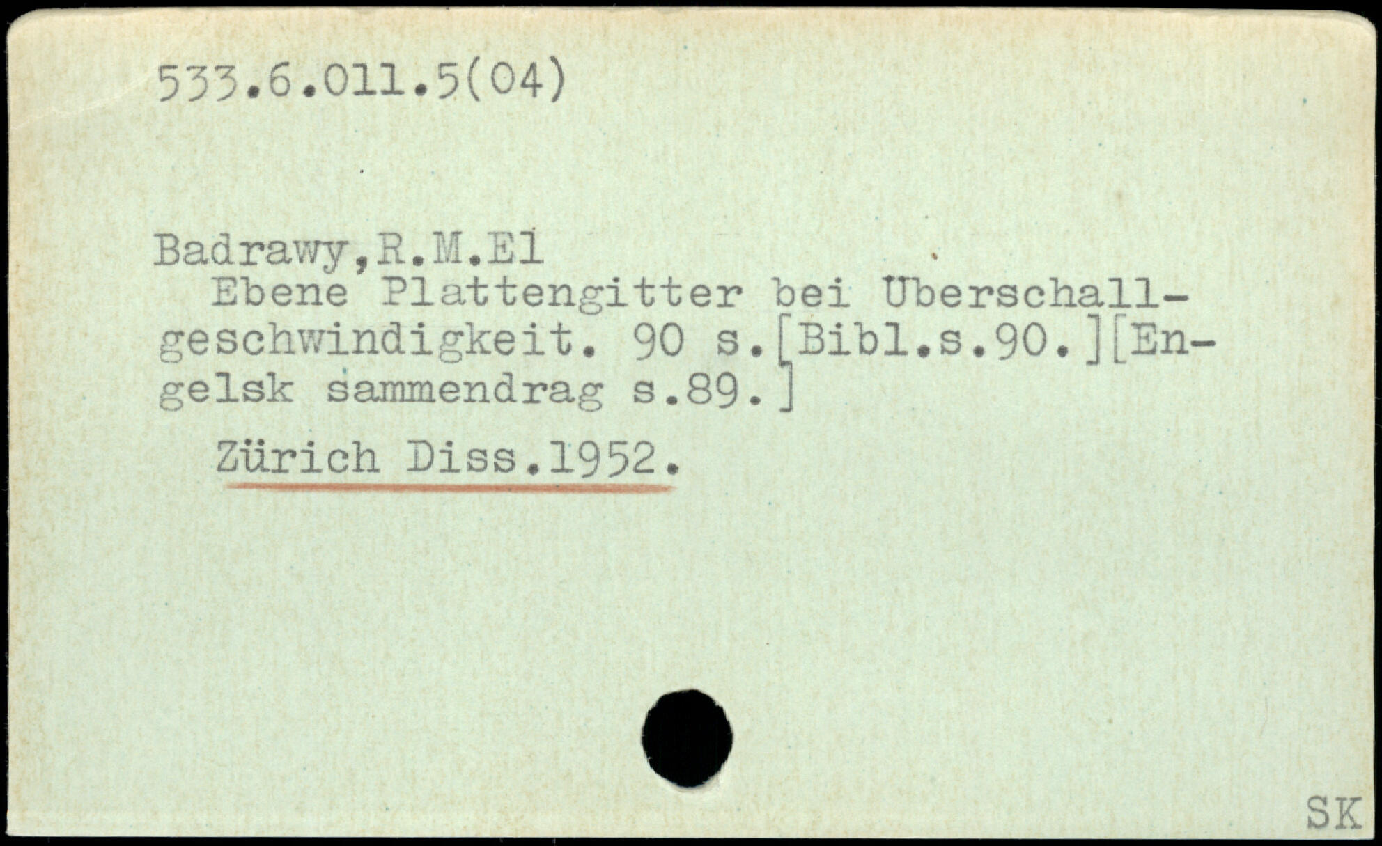 Badrawy, R. M. EI Ebene Plattengitter bei Überschallgeschwindigkeit.