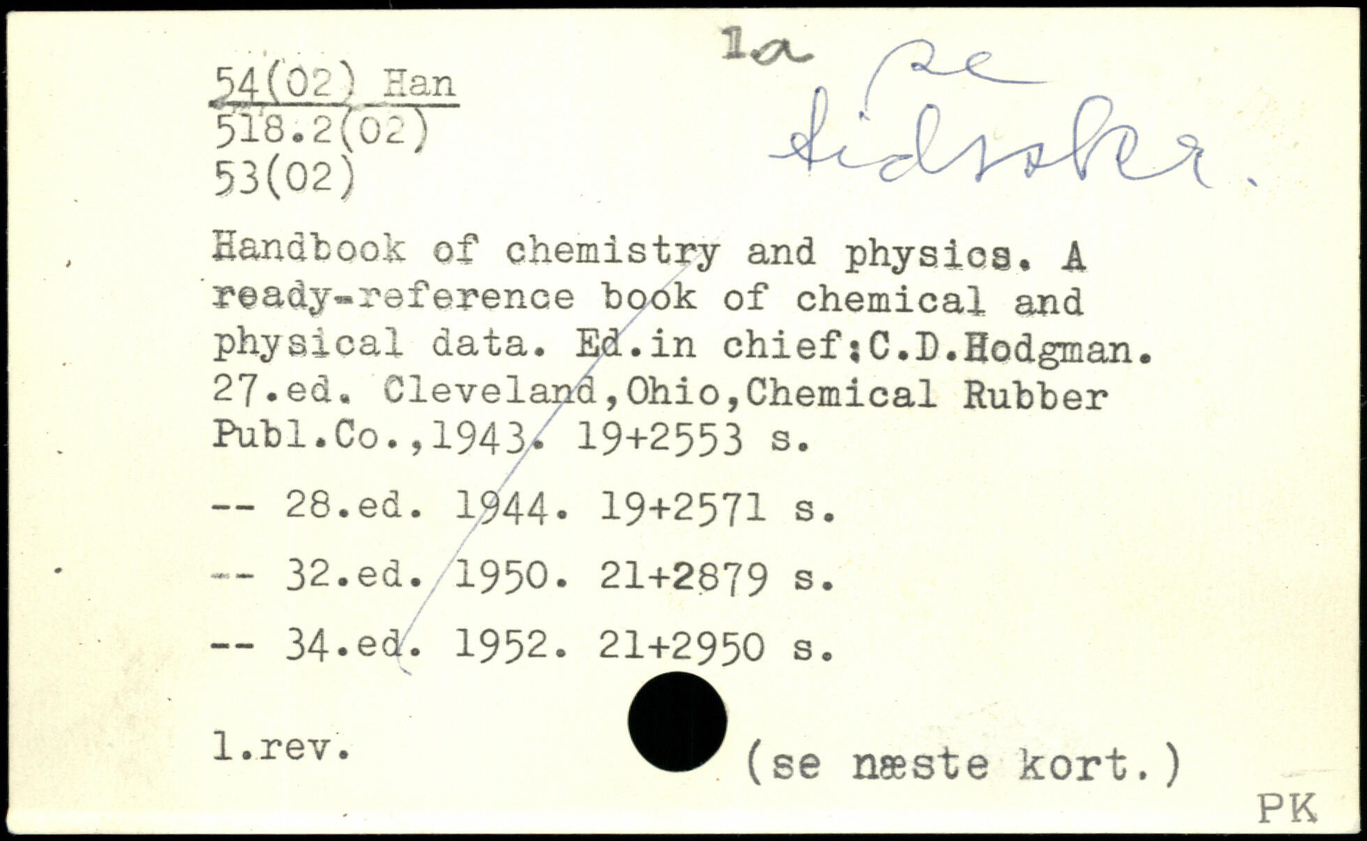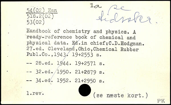 , Handbook of chemistry and physics. A ready-reference hook of chemical and physical data. Ed.in chiefjC.D.Hodgman.