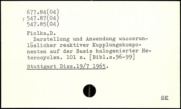 Darstellung und Anwendung wasserunlöslicher reaktiver Kupplungskomponenten auf der Basis halogenierter Heterocyclen.