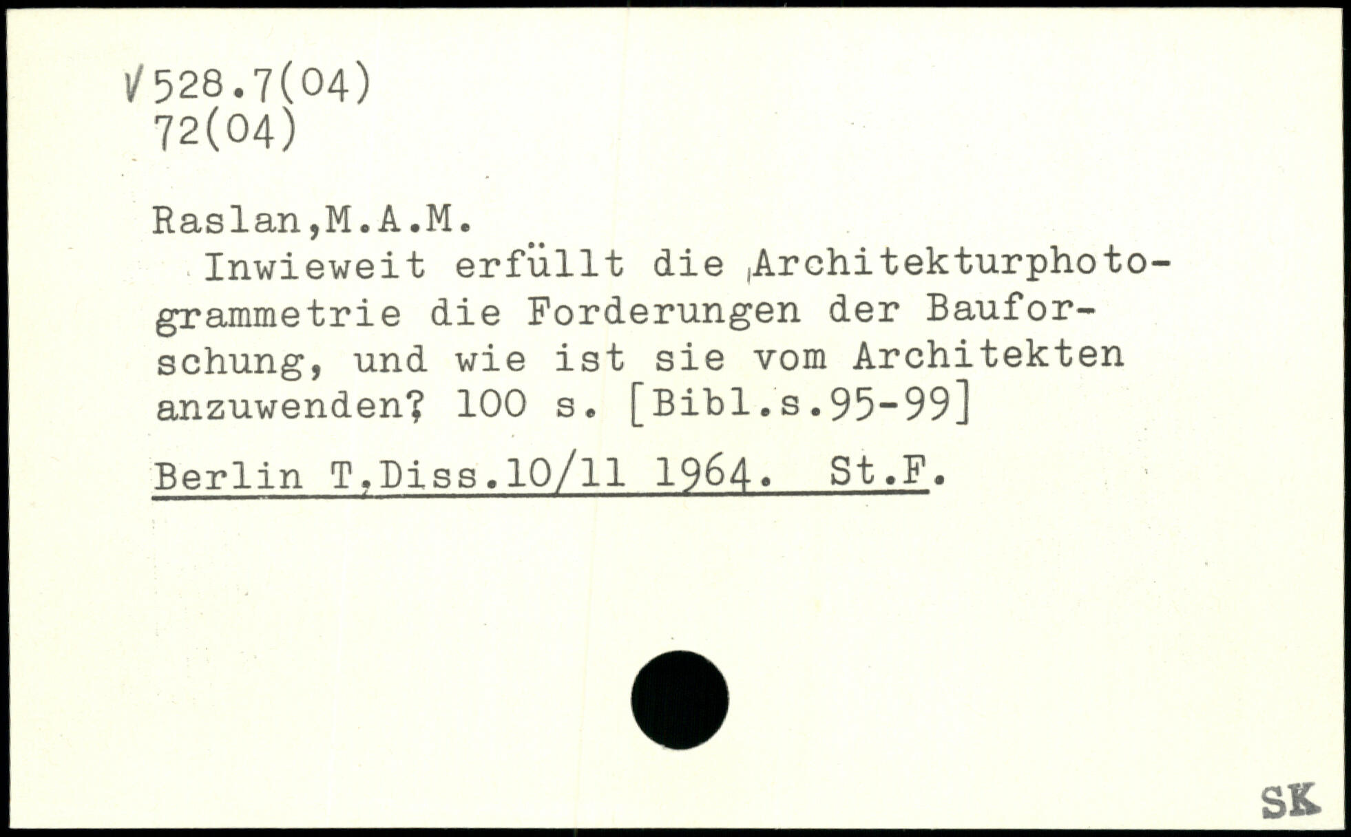 Inwieweit erfüllt die (Architekturphotogrammetrie die Forderungen der Bauforschung, und wie ist sie vom Architekten anzuwenden?
