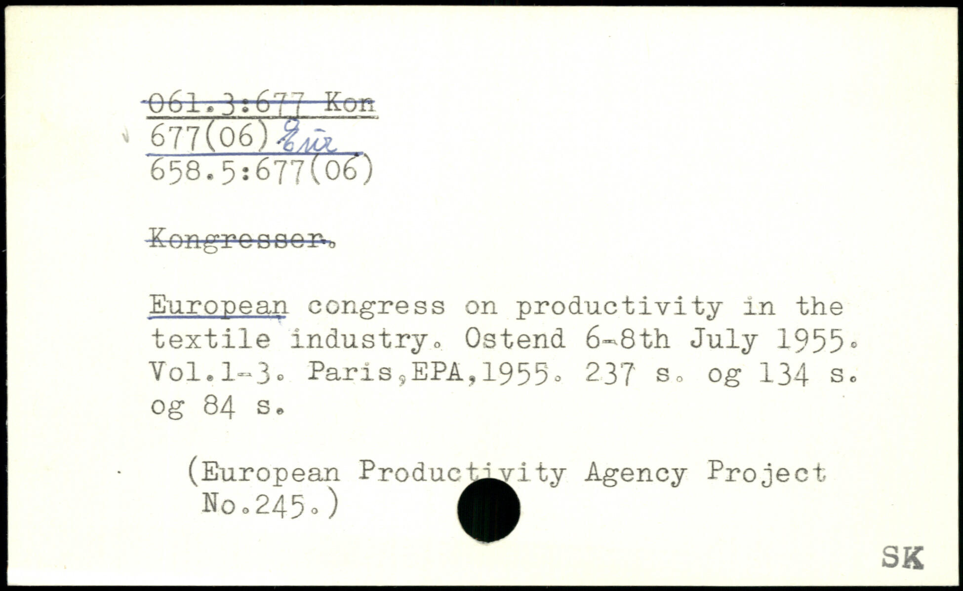 European congress on productivity in the textile industryo Ostend 6-8th July 1955.