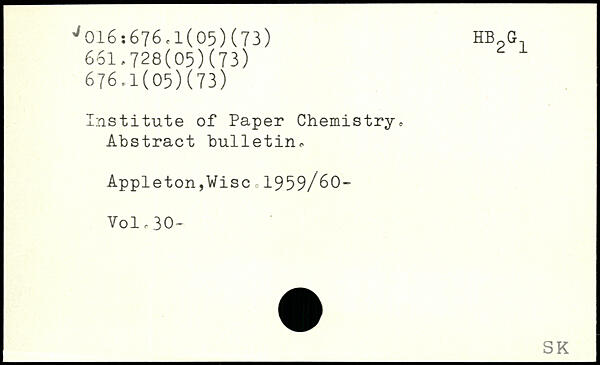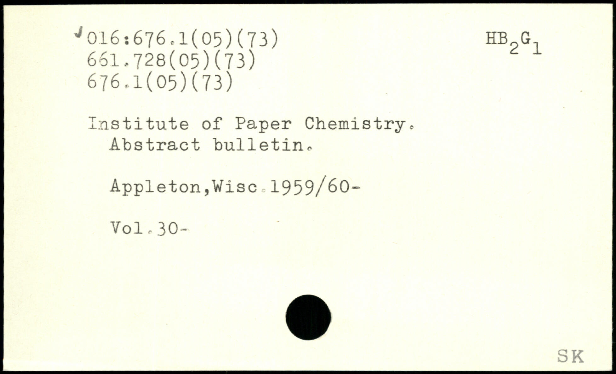 Institute of Paper Chemistry. Abstract bulletin. Appleton,Wise-1959/60- Yol. 30-
