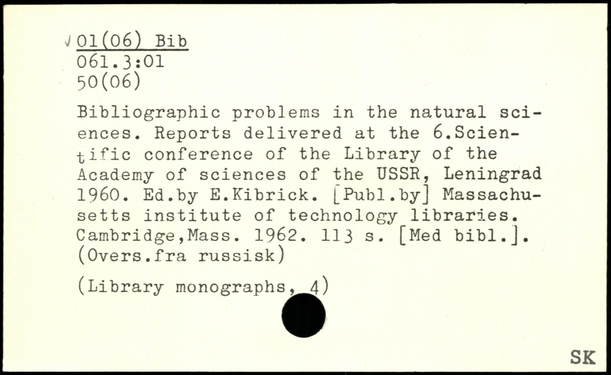 Bibliographic problems in the natural sciences. Reports delivered at the 6.Scientific conference of the Library of the Academy of sciences of the USSR