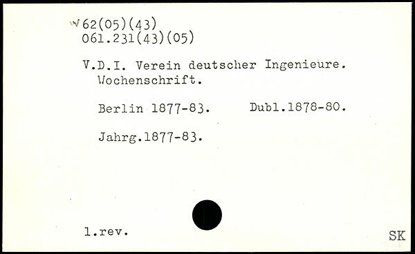 V.D.I. Verein deutscher Ingenieure. Wochenschrift.
