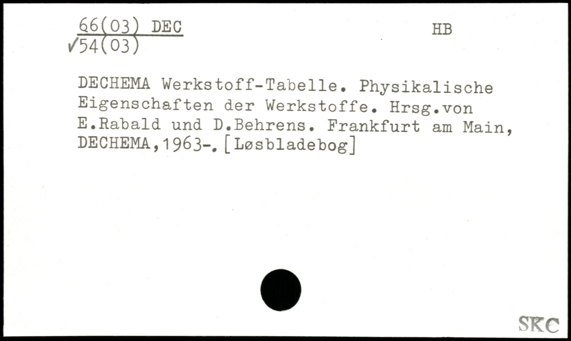 DECHEMA Werkstoff-Tabelle. Physikalische Eigenschaften der Werkstoffe. Hrsg.von E.Rabald und D.Behrens.