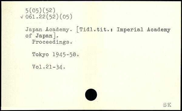 Japan Academy, [Tidl.tit.: Imperial Academy of Japan], Proceedings