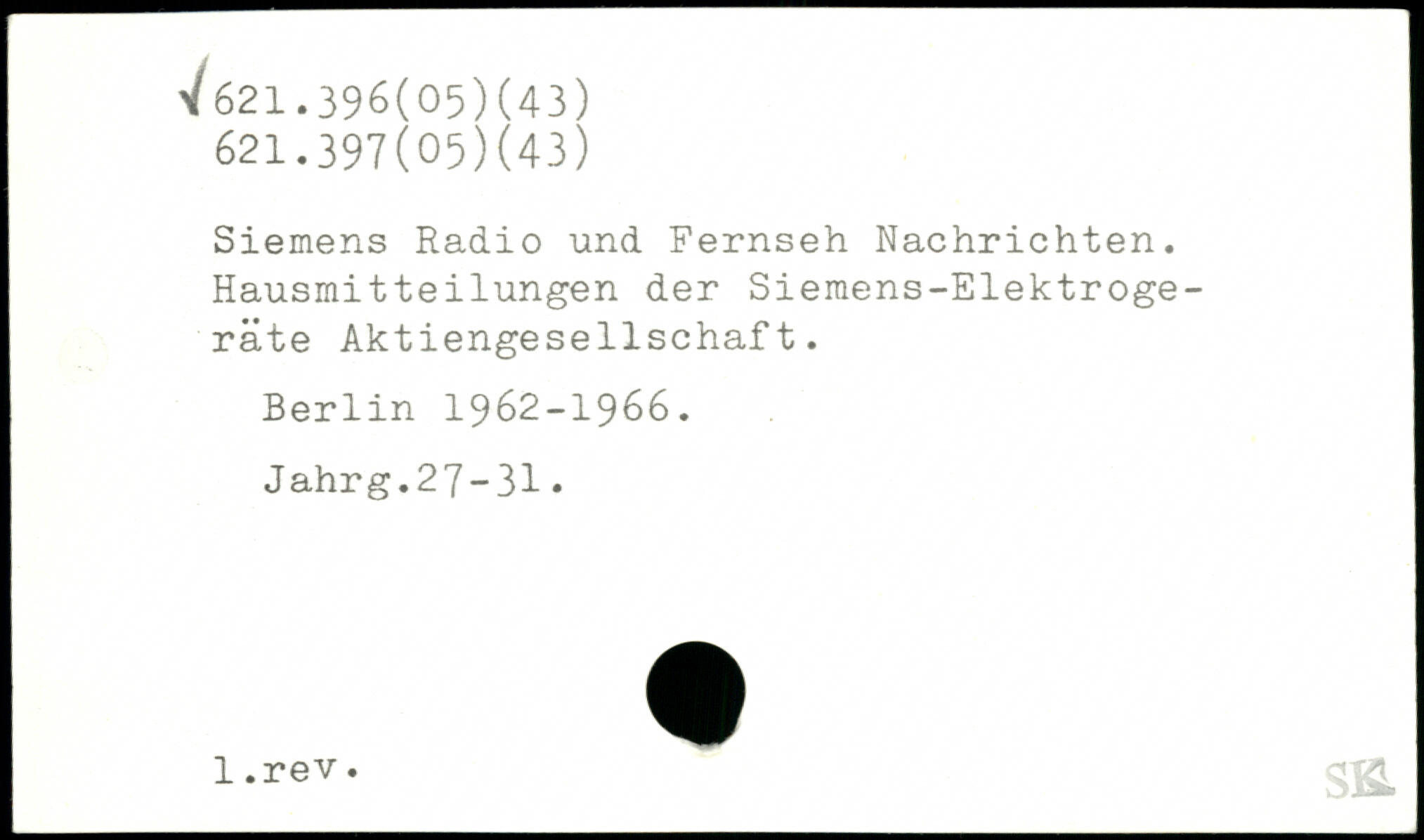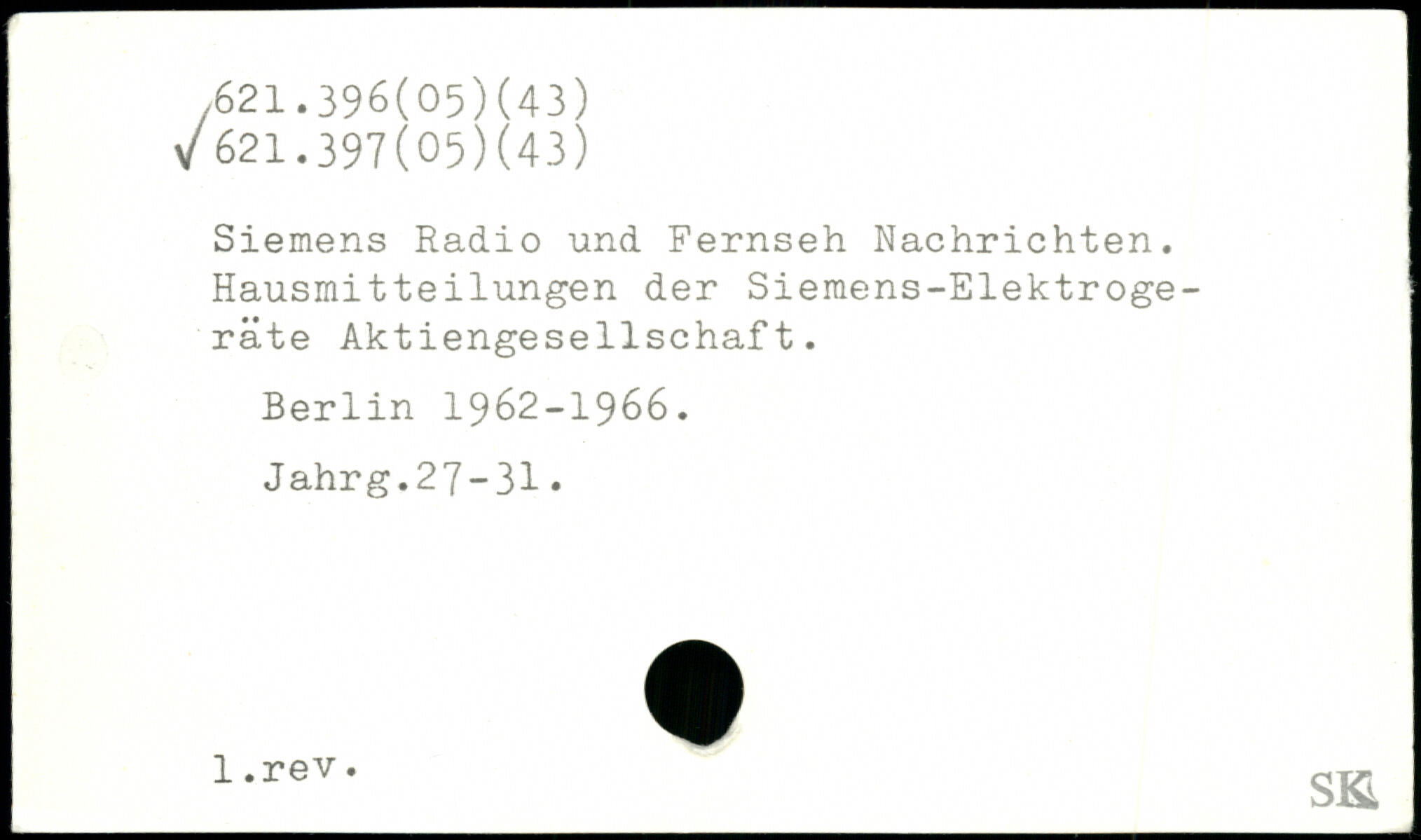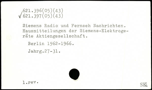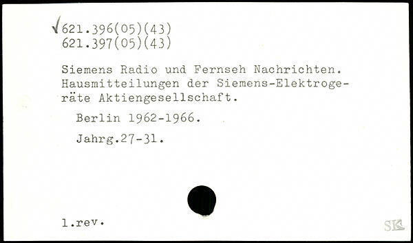 Siemens Radio und Fernseh Nachrichten. Hausmitteilungen der Siemens-Elektrogeräte Aktiengesellschaft.
