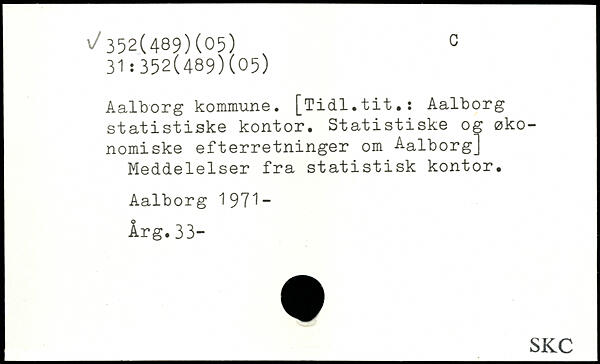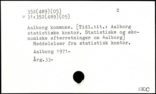 Aalborg kommune. [Tidl.tit.: Aalborg statistiske kontor. Statistiske og økonomiske efterretninger om Aalborg] Meddelelser fra statistisk kontor.