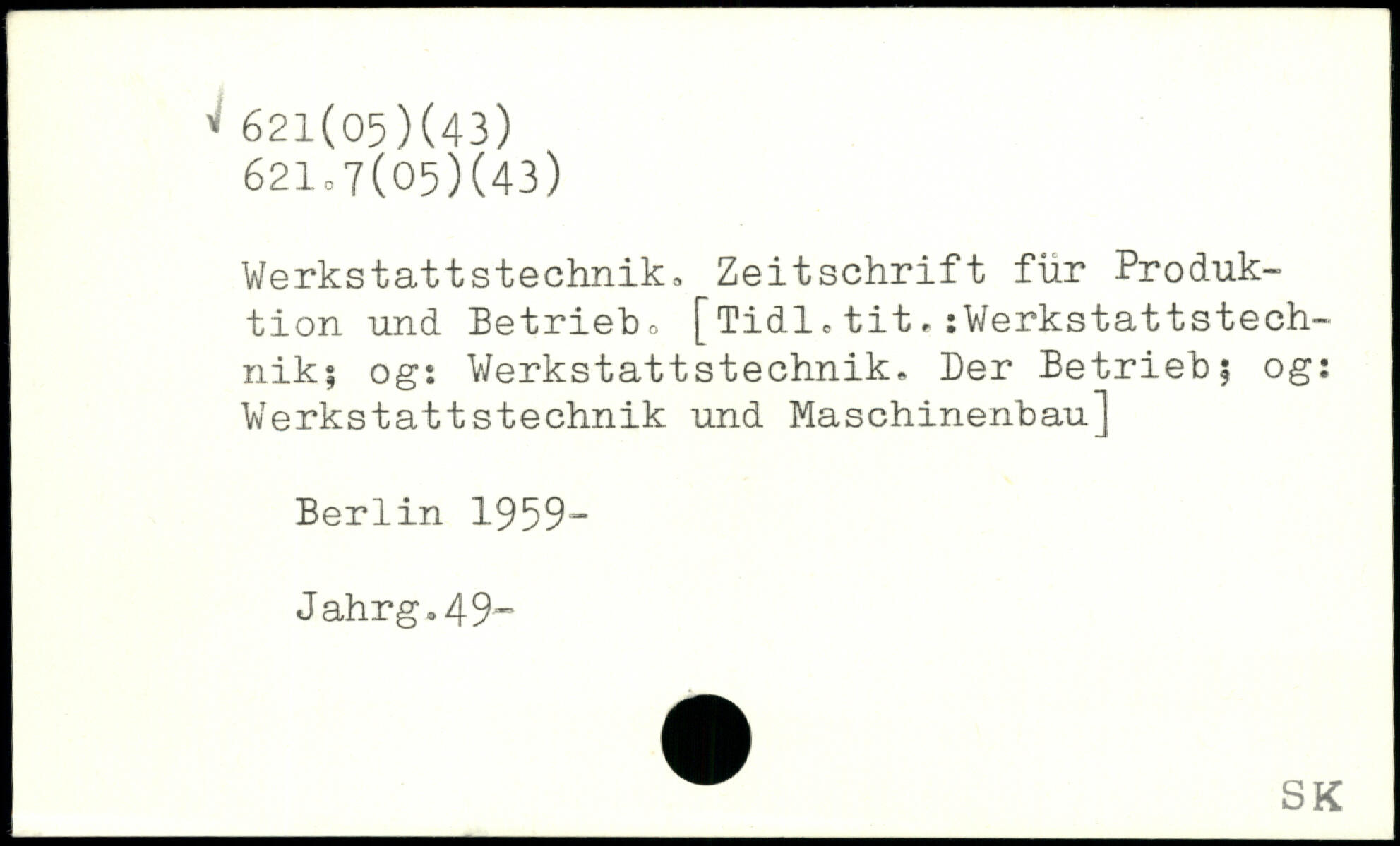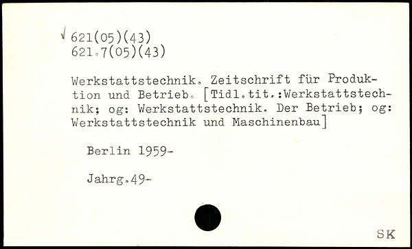 Werkstattstechnik, Zeitschrift für Produktion und Betrieb, [Tidl.tit,:Werkstattstech~ nik; ogi Werkstattstechnik. Der Betrieb? og: Werkstattstechnik und Maschinenbau]