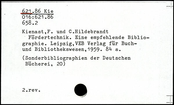 Fördertechnik. Eine empfehlende Bibliographie. Leipzig,VEB Verlag für Buch-und Bibliothekswesen,1959-