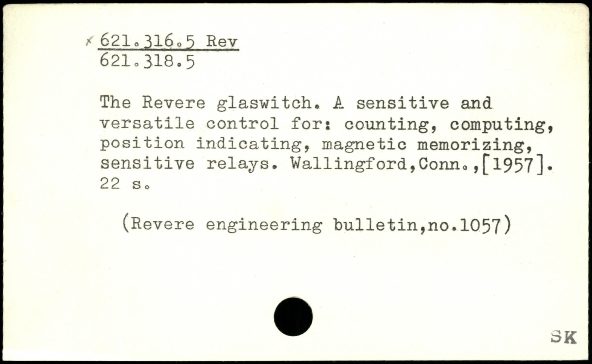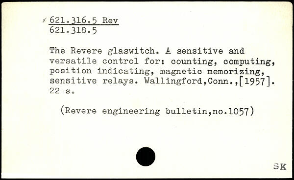 The Revere glaswitch. A sensitive and versatile control fori counting, computing, position indicating, magnetic memorizing, sensitive relays. Wallingford,Conn,,[1957].