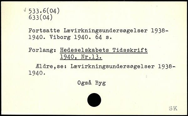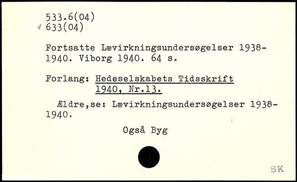 Fortsatte Lævirkningsundersøgelser 1938-1940. Viborg 1940.
