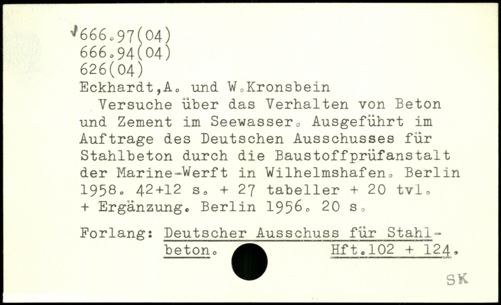 Versuche über das Verhalten von Beton und Zement im Seewasser. Ausgeführt im Aufträge des Deutschen Ausschusses für Stahlbeton durch die Baustoffprüfanstatt der Marine-Werft in Wilhelmshafen.