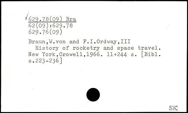 Braun,W.von and F.I.Ordway,III History of rocketry and space travel.