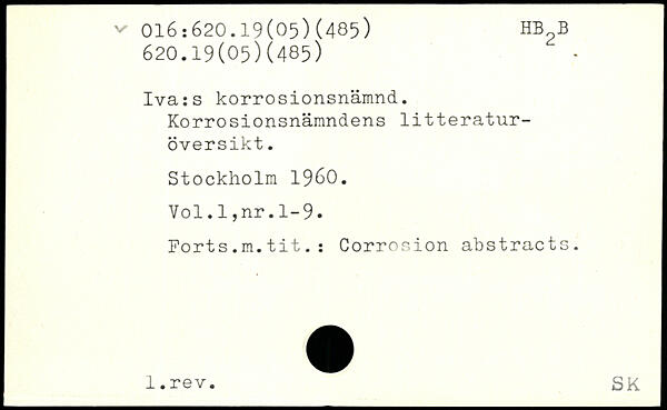Iva:s korrosionsnämnd. Korrosionsnämndens litteraturöversikt.