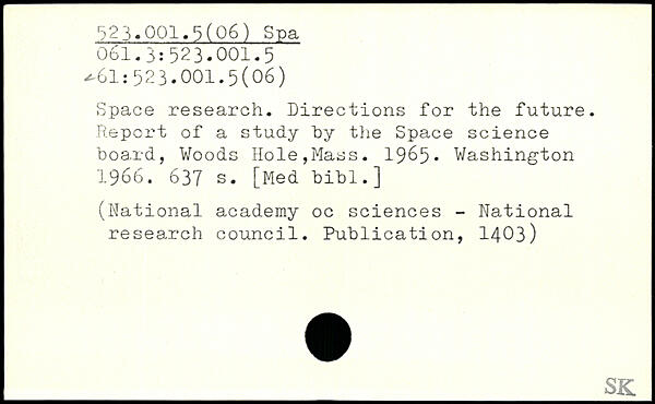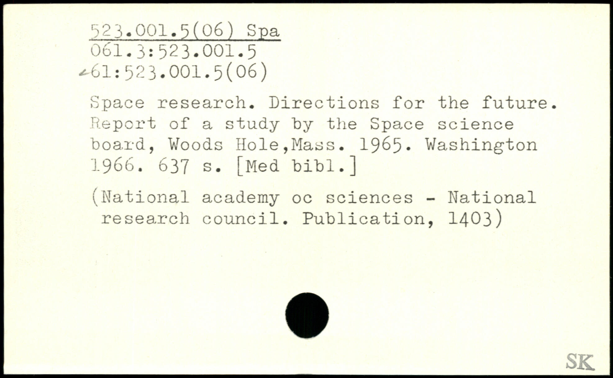 Space research. Directions for the future. Report of a study hy the Space science board, Woods Hole,Mass. 1965.