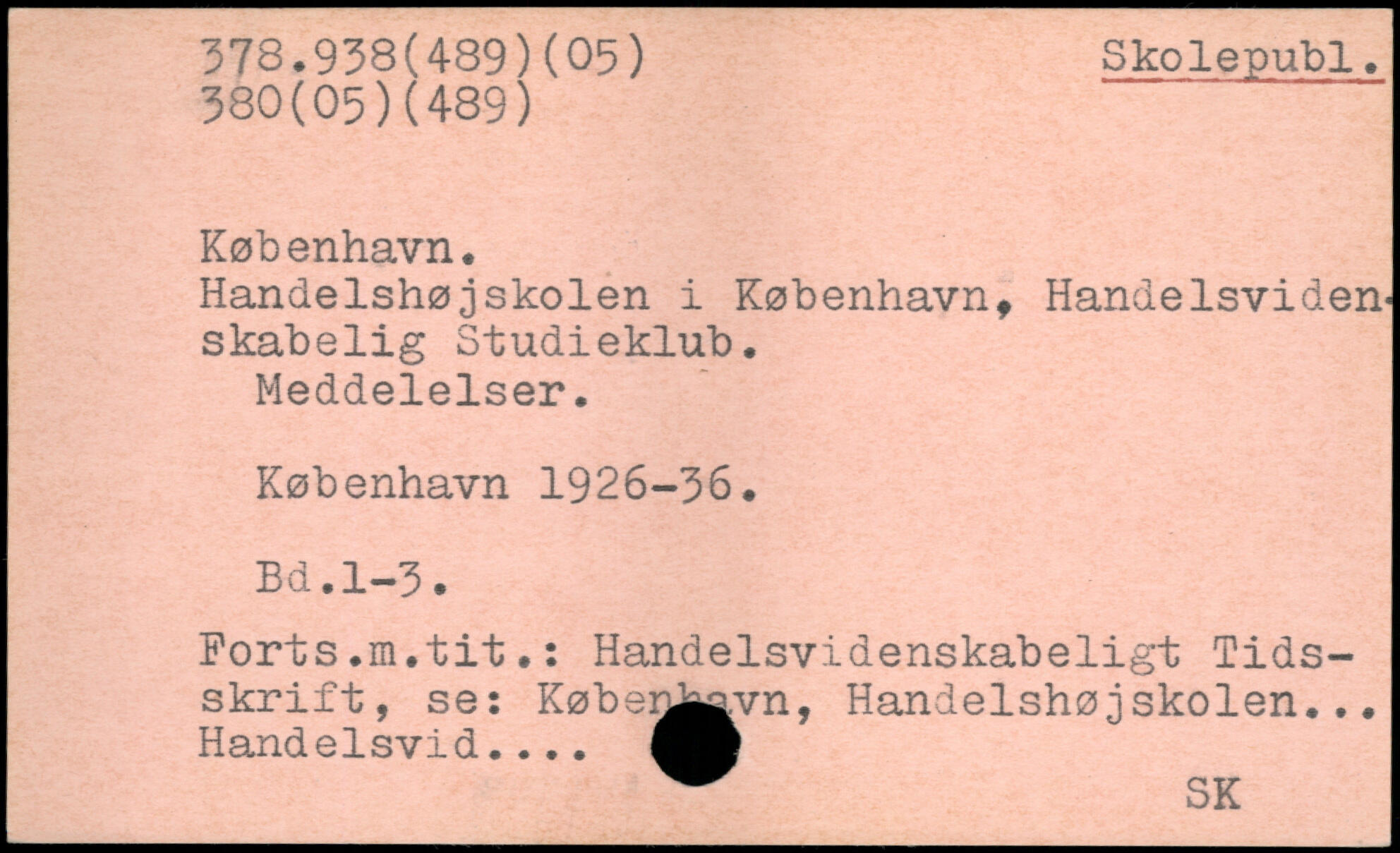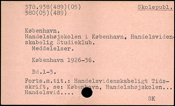 Handelshøjskolen i København, Handelsvidenskabelig Studieklub, Meddelelser.