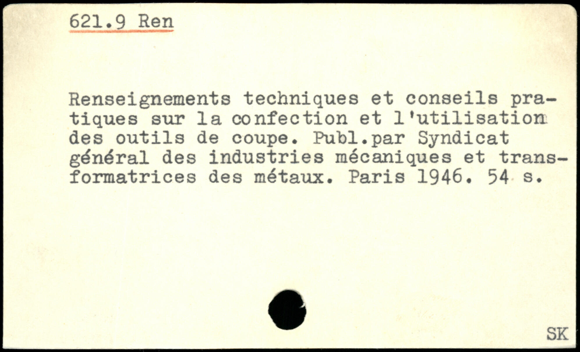 Renseignements techniques et conseils pratiques sur la confection et l'utilisation des outils de coupe. Publ.par Syndicat général des industries mécaniques et transformatrices des métaux.
