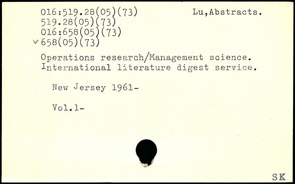 Operations research/Management science. International literature digest service. I New Jersey 1961- Vol.l-