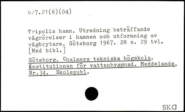 Tripolis hamn. Utredning beträffande vågrorelser i hamnan och utformning av vågbrytare. Göteborg 19^7.