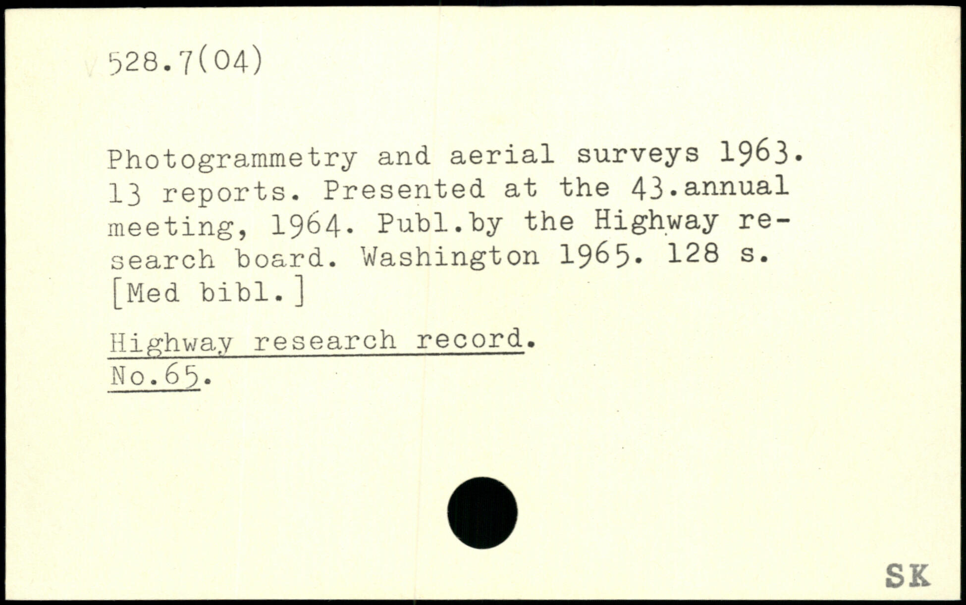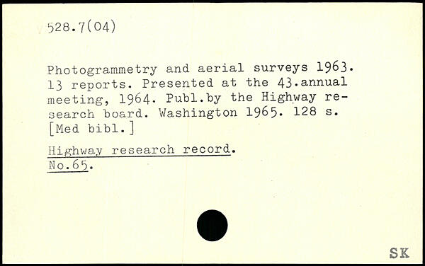 Photogrammetry and aerial surveys 1963-13 reports. Presented at the 43.annual meeting, 1964.