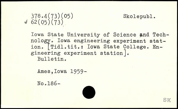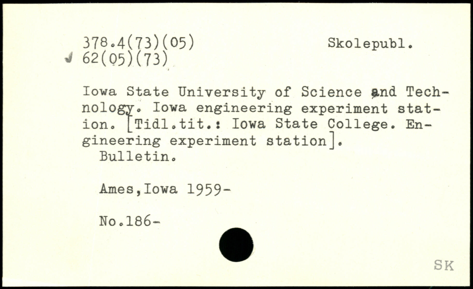 Iowa State University of Science find Technology.. Iowa engineering experiment station, [Tidl.tit.: Iowa State College. Engineering experiment station]. Bulletin. Ames,Iowa 1959- No.186-