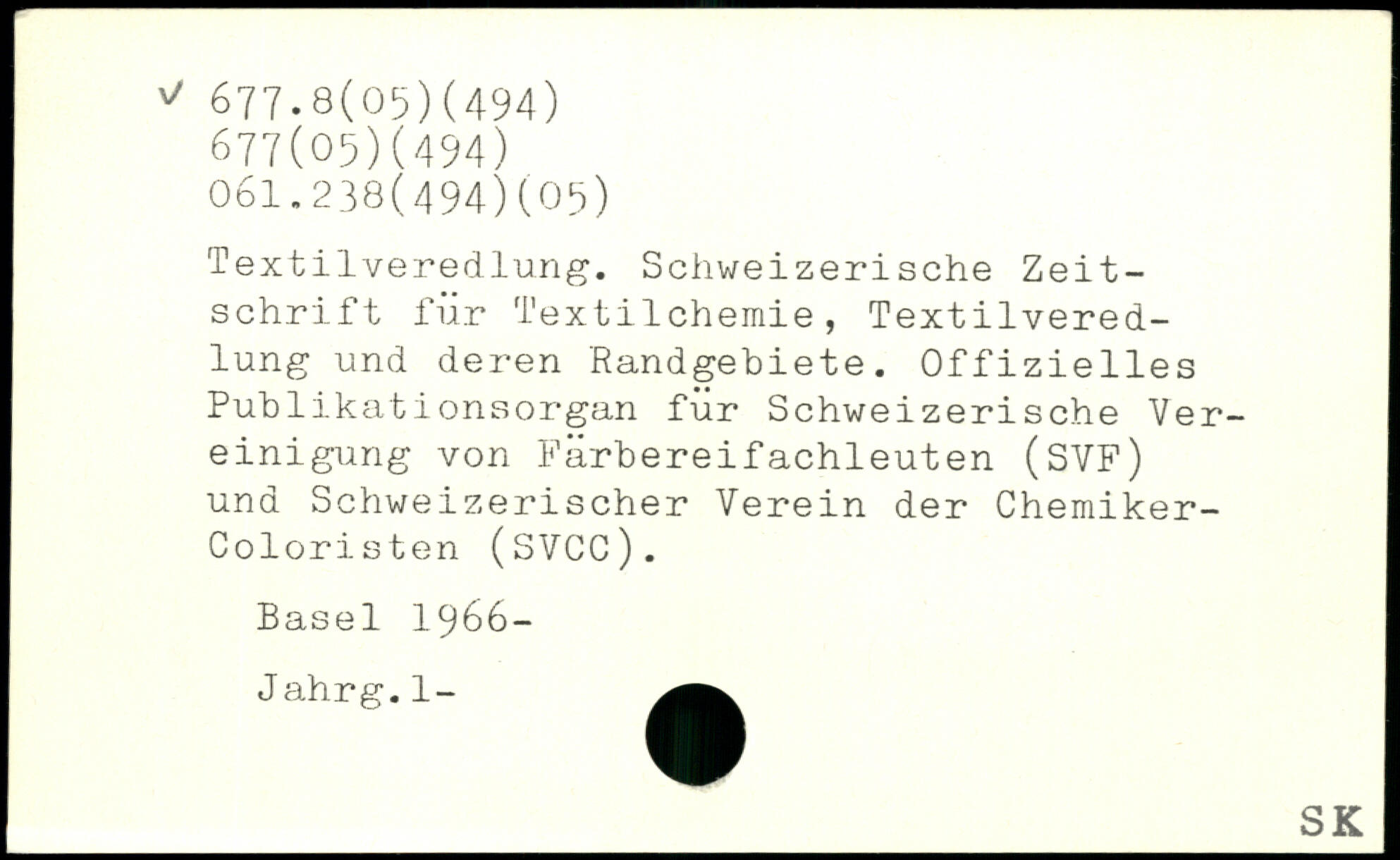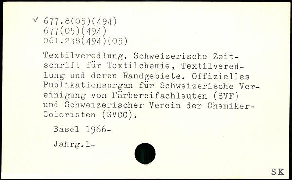 Textilveredlung. Schweizerische Zeitschrift für Textilchemie, Textilveredlung und deren Randgebiete. Offizielles Publikationsorgan für Schweizerische Ver- :j einigung von Färbereifachleuten (SVF) und Schweizerischer Verein der Chemiker-Coloristen (SVCC).
