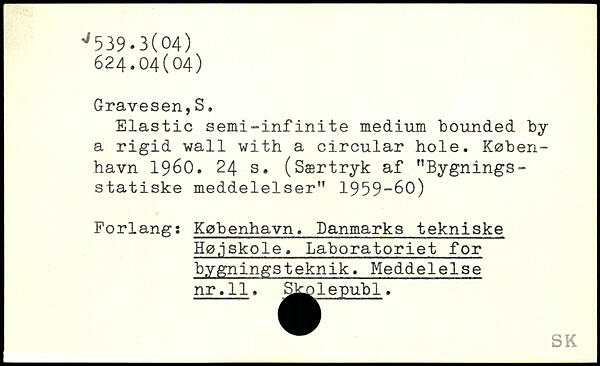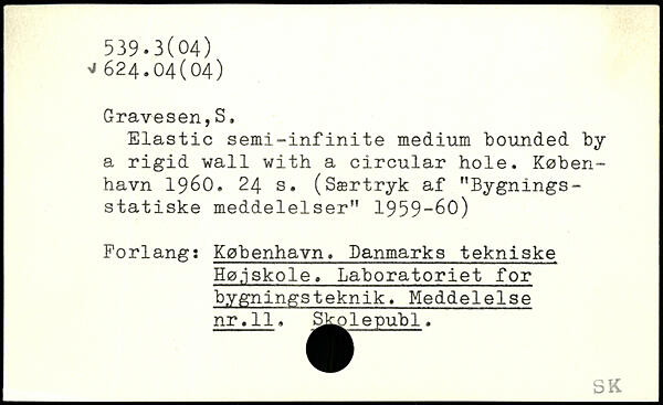 Elastic semi-infinite medium bounded by a rigid wall with a circular hole.