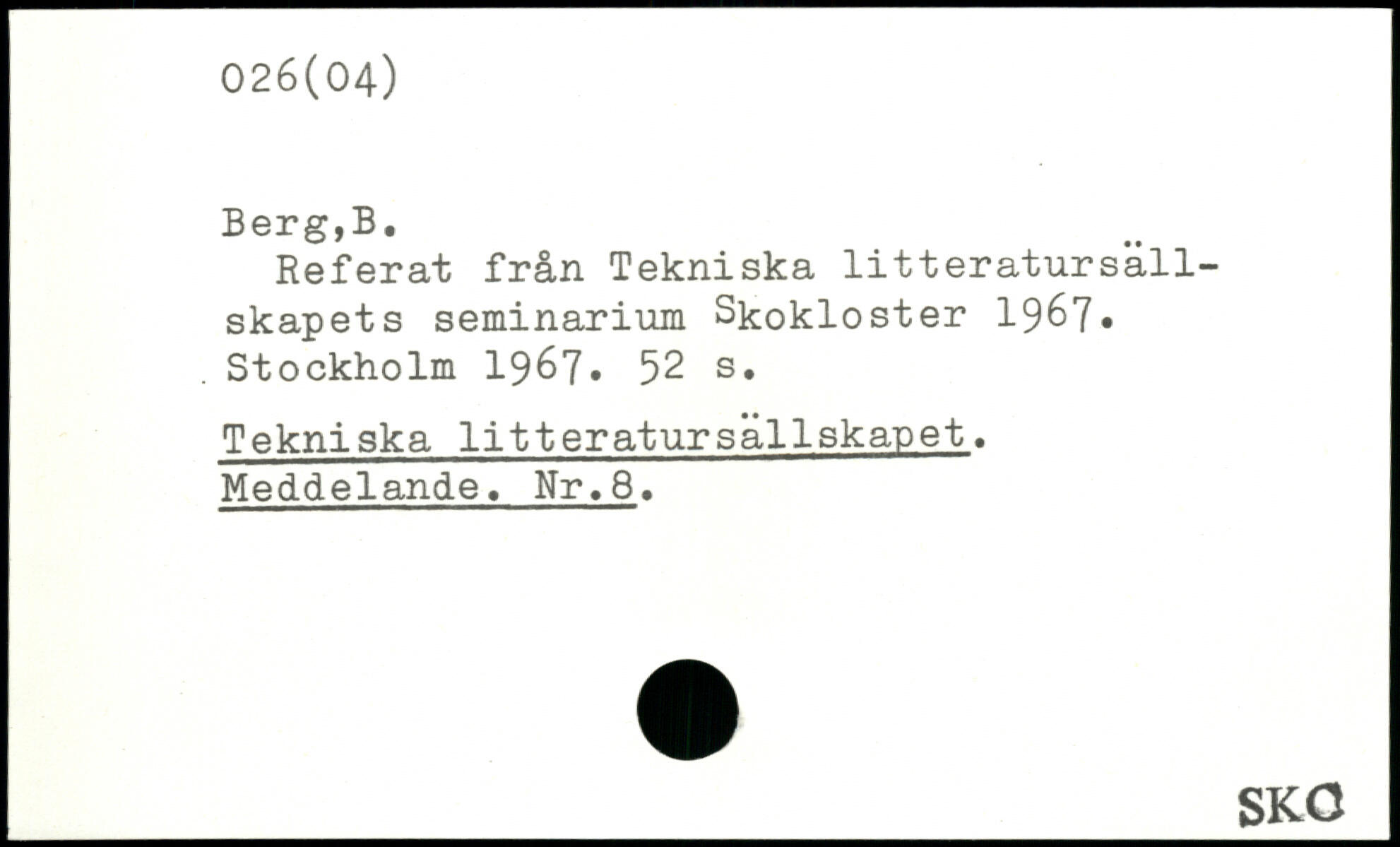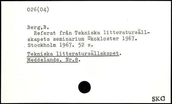 Referat från Tekniska litteratursällskapets seminarium Skokloster 1967