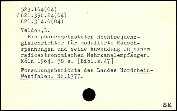 Ein phasengetasteter Hochfrequenzgleichrichter für modulierte Rauschspannungen und seine Anwendung in einem radioastronomischen Mehrkanalempfanger.