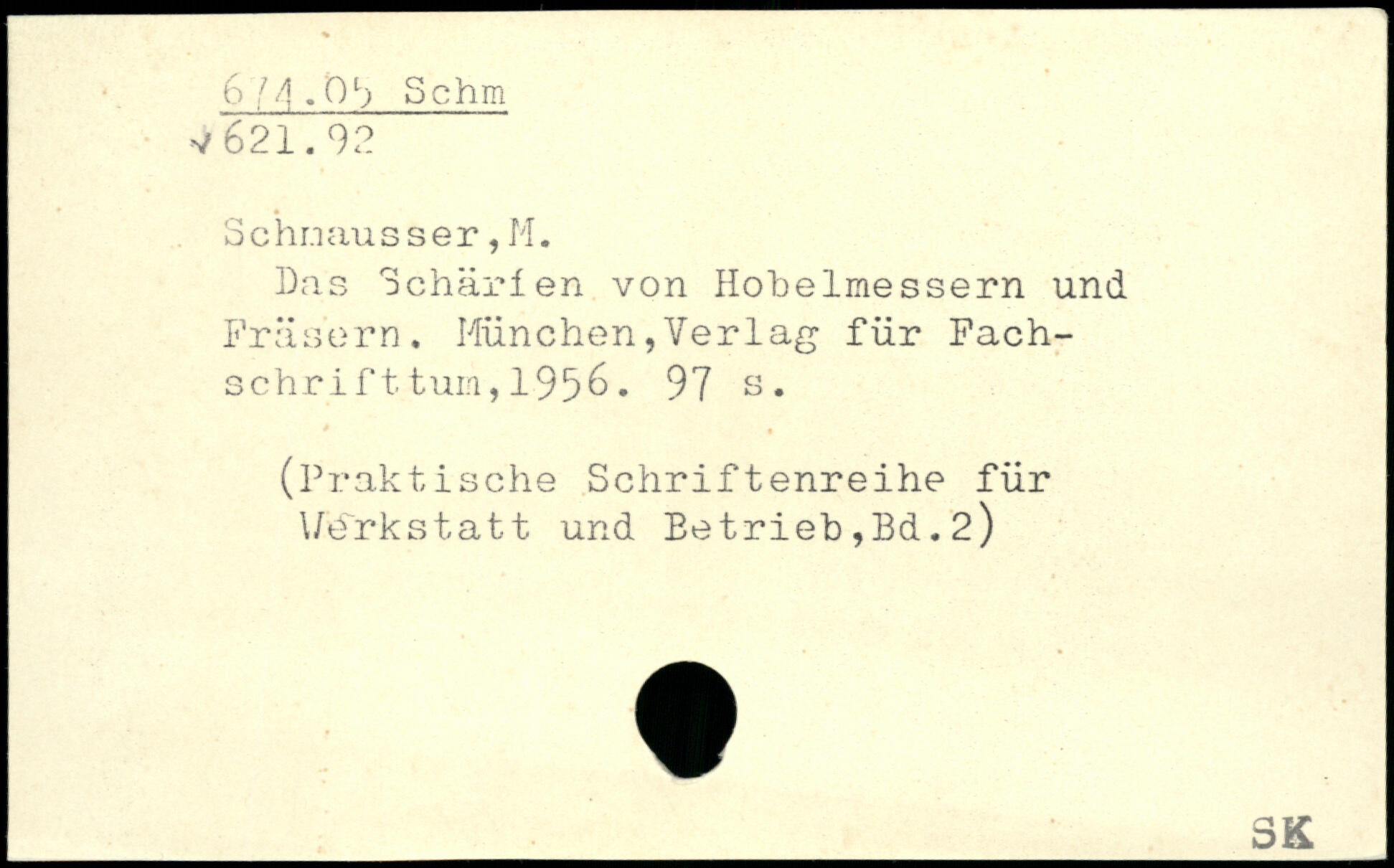 Das Schärfen von Hobelmessern und Fräsern. München,Verlag für Fachschrift. tum,1956.