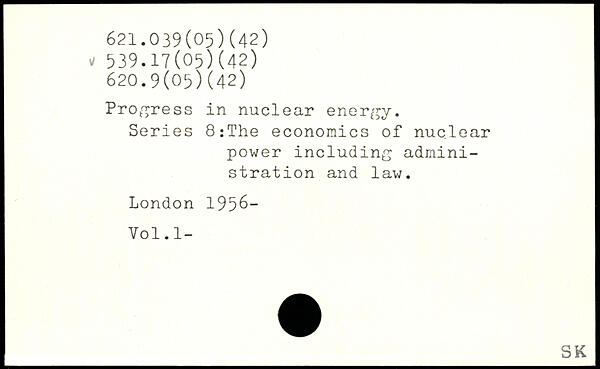 Progress in nuclear energy. Series 8:The economics of nuclear power including administration and law.