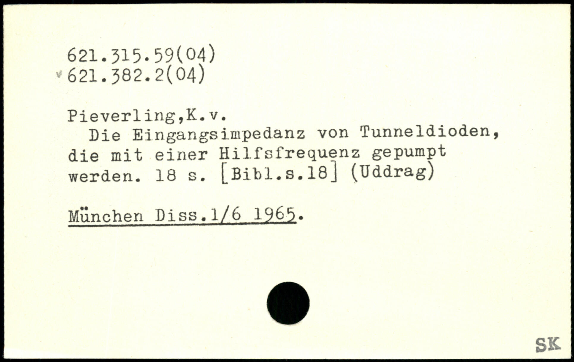 Die Eingangsimpedanz von Tunneldioden, die mit einer Hilfsfrequenz gepumpt werden.
