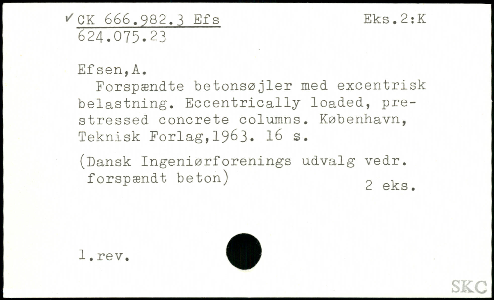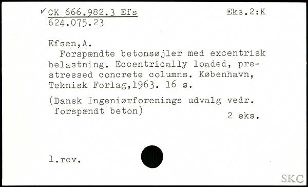 Forspændte betonsøjler med excentrisk belastning. Eccentrically loaded, prestressed concrete columns. København, Teknisk Forlag,19^3.