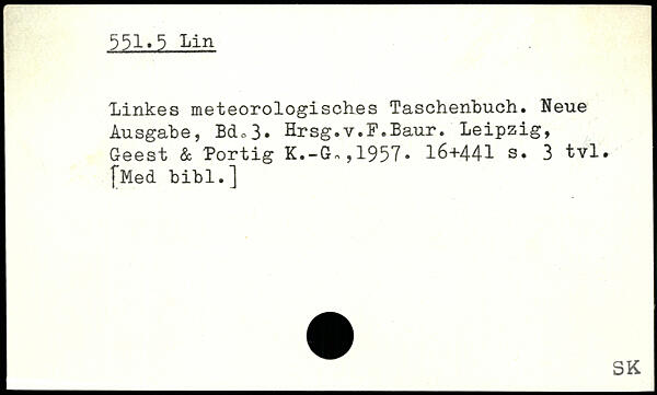 Linkes meteorologisches Taschenhuch. Neue Ausgabe, Bdc3. Hrsg.v.F.Baur. Leipzig, Geest & Portig K.-Go,1957