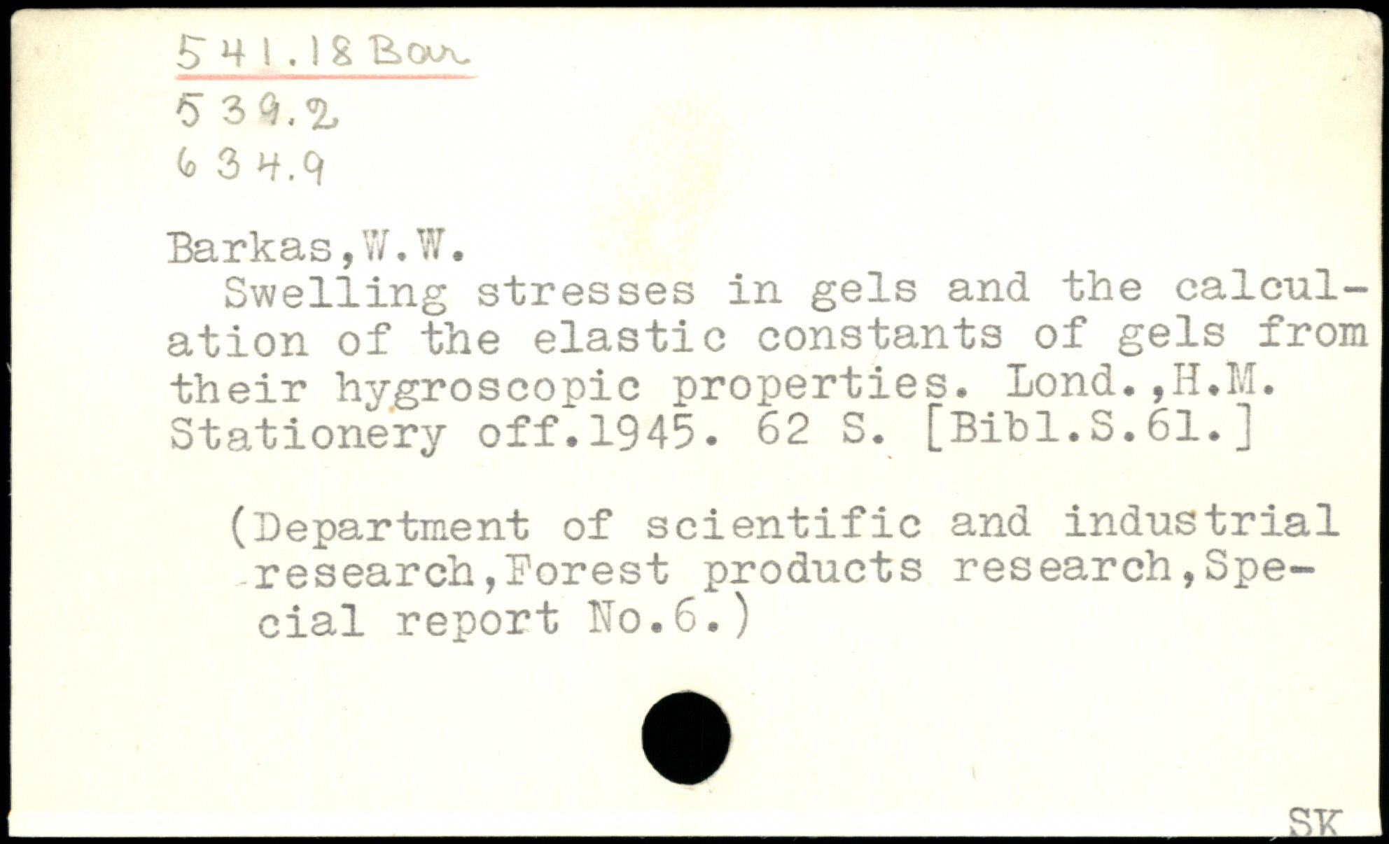Swelling stresses in gels and the calculation of the elastic constants of gels from their hygroscopic properties. Lond.,H.M. Stationery off.1945.