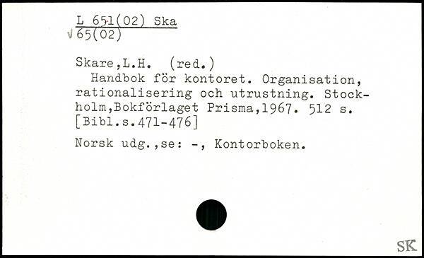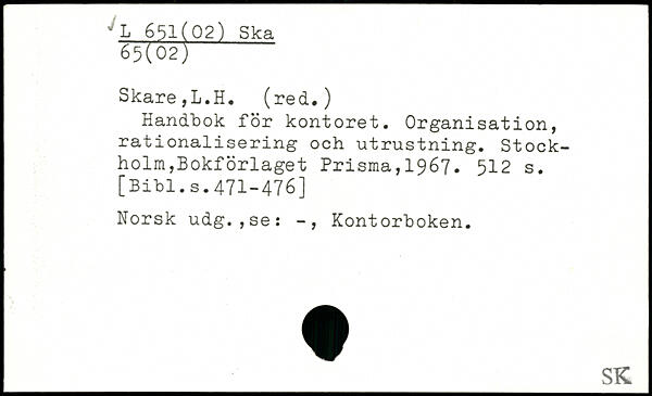 Handbok för kontoret. Organisation, rationalisering och utrustning.