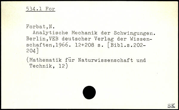 Analytische Mechanik der Schwingungen. Berlin,VEB deutscher Verlag der Wissenschaf ten,1966.