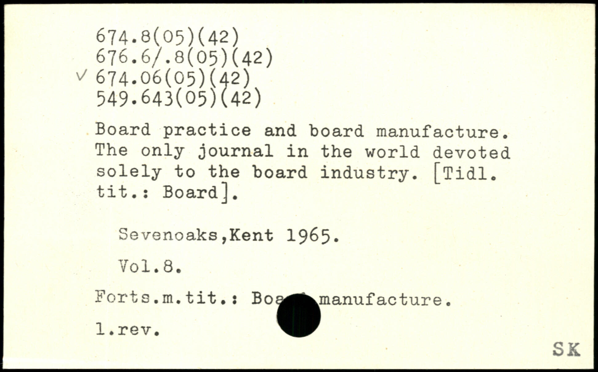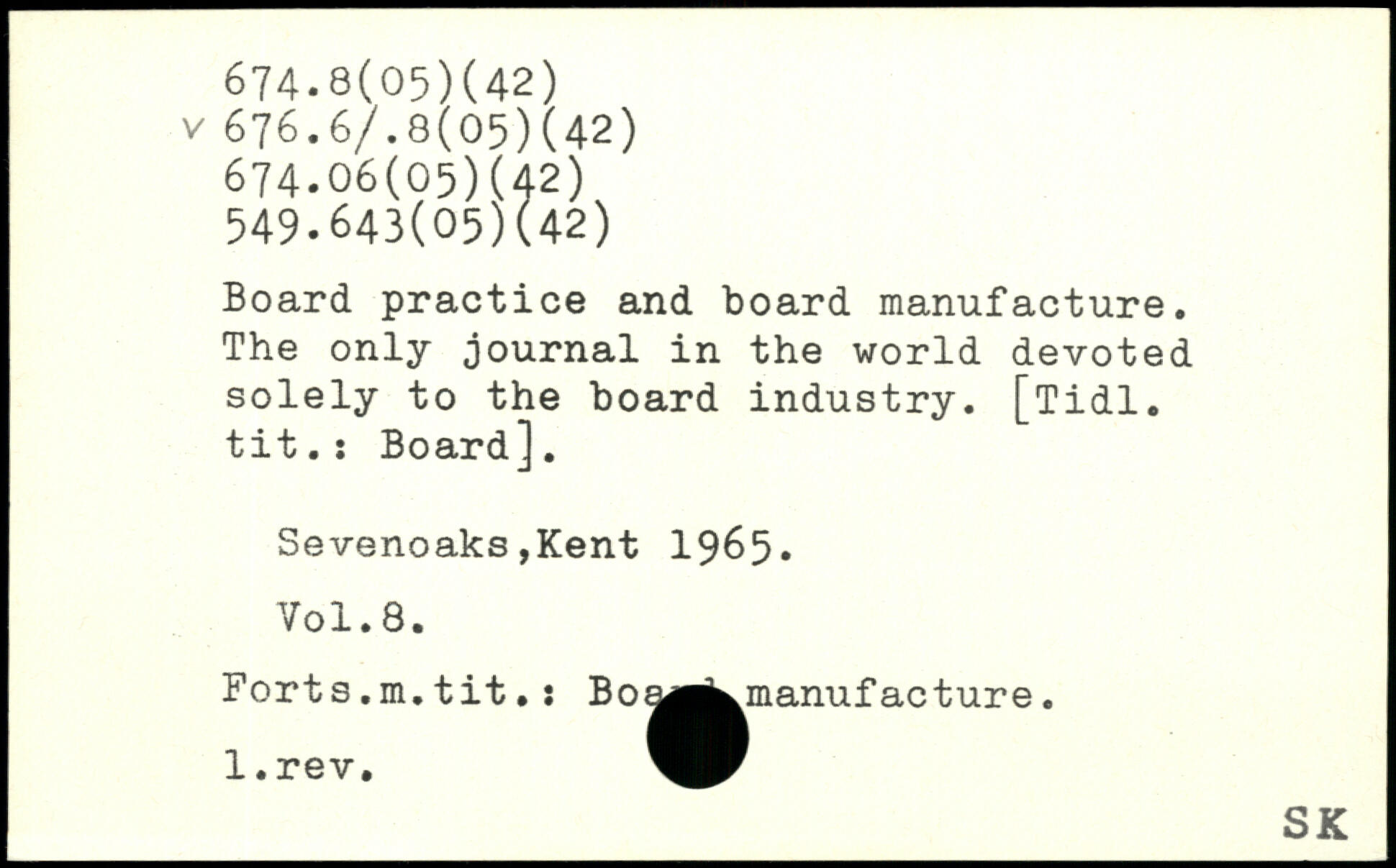 Board practice and board manufacture. The only journal in the world devoted solely to the board industry.