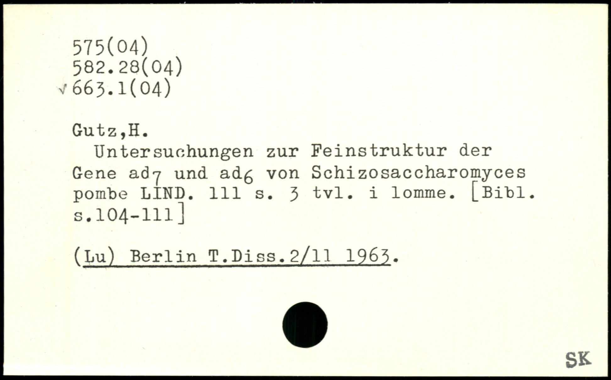 Untersuchungen zur Feinstruktur der Gene ady und ad£ von Schizosaccharomyces pomhe LIND.
