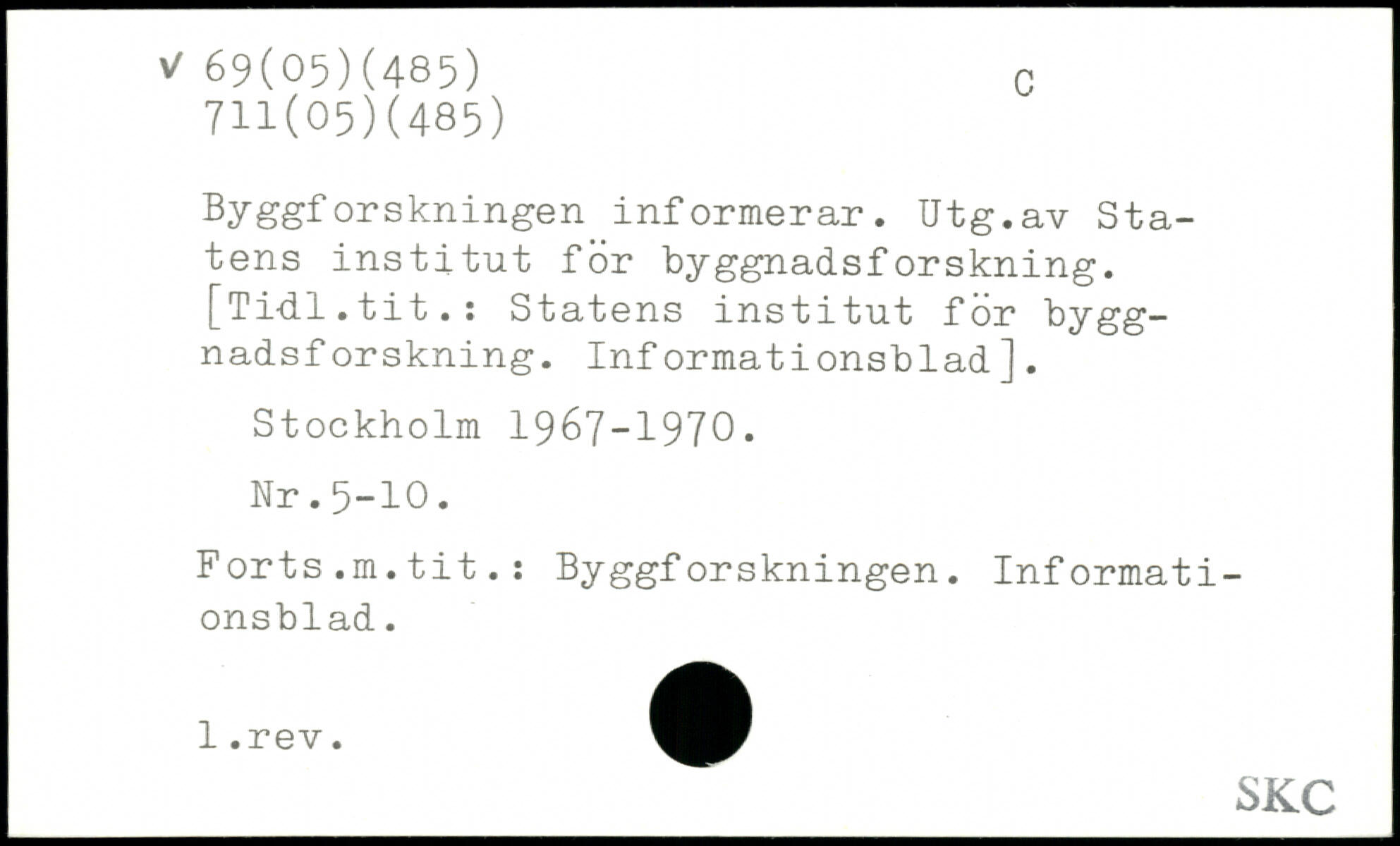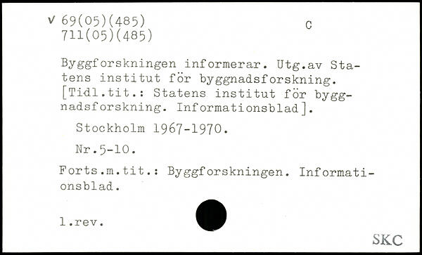 Byggforskningen informerar. Utg.av Statens institut för byggnadsforskning. [Ti-dl.tit.: Statens institut för byggnadsf orskning. Informationsblad].