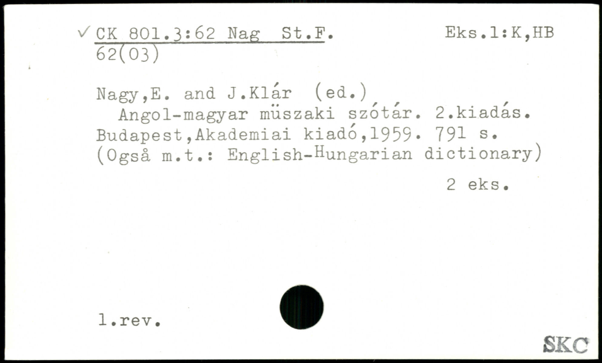 Angol-magyar miiszaki szotar. 2.kiadas.