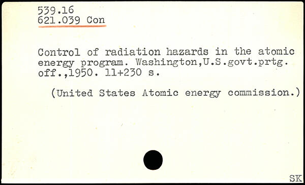 Control of radiation hazards in the atomic energy program. Washington,U.S.govt.prtg. off.,1950.